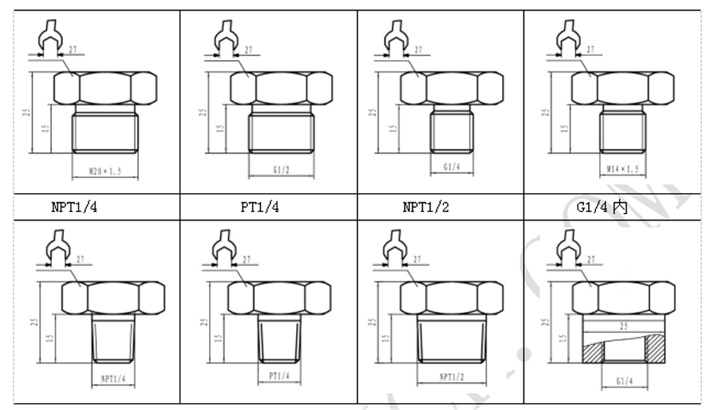 | 壓力連接: | G1/4, G1/2, 1/2NPT, 1/4NPT, M12*1.5等(可按客戶要求定制) |