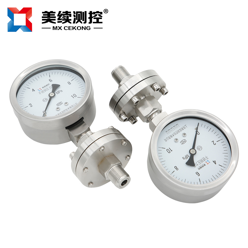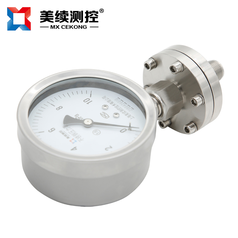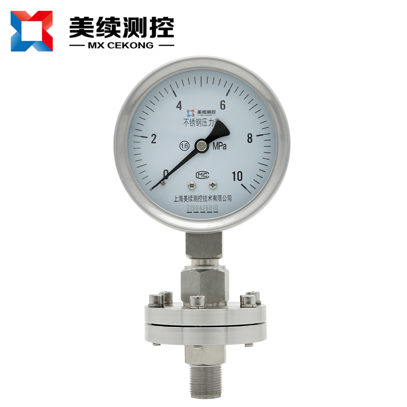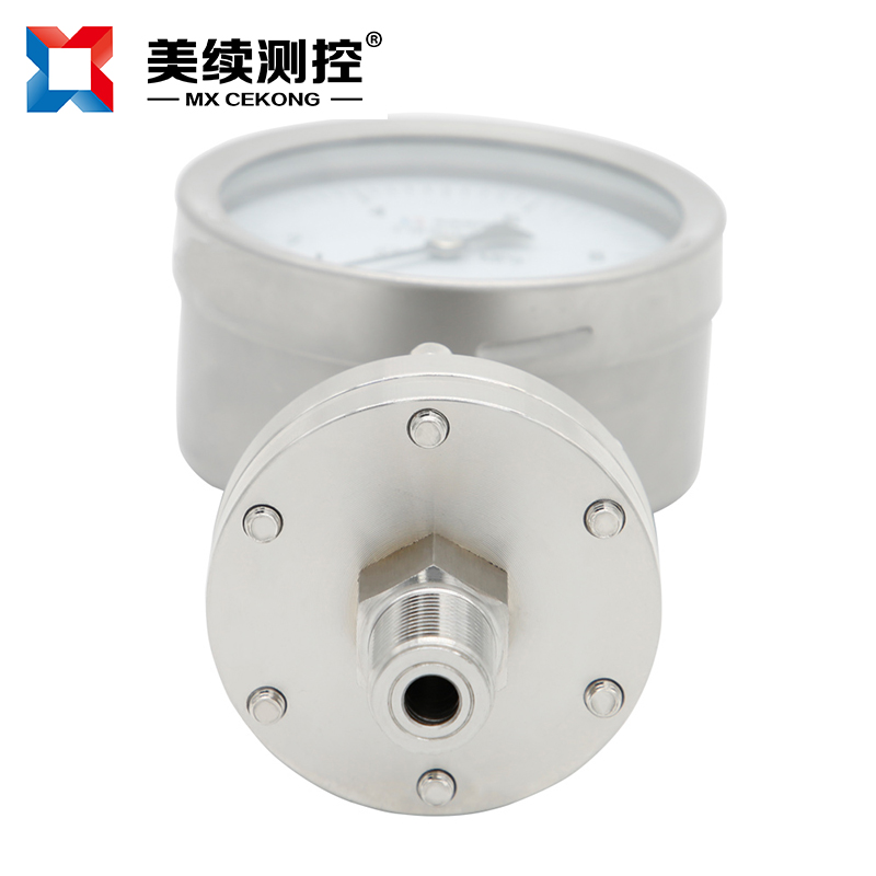 化工封油隔膜壓力表MX-YB-04隔膜式壓力表采用高彈性合金波紋膜片、原裝進口機芯,全不銹鋼結構設計,能適應各行各業的腐蝕性介質的壓力測量。表殼任意360度調整最佳可視角度。