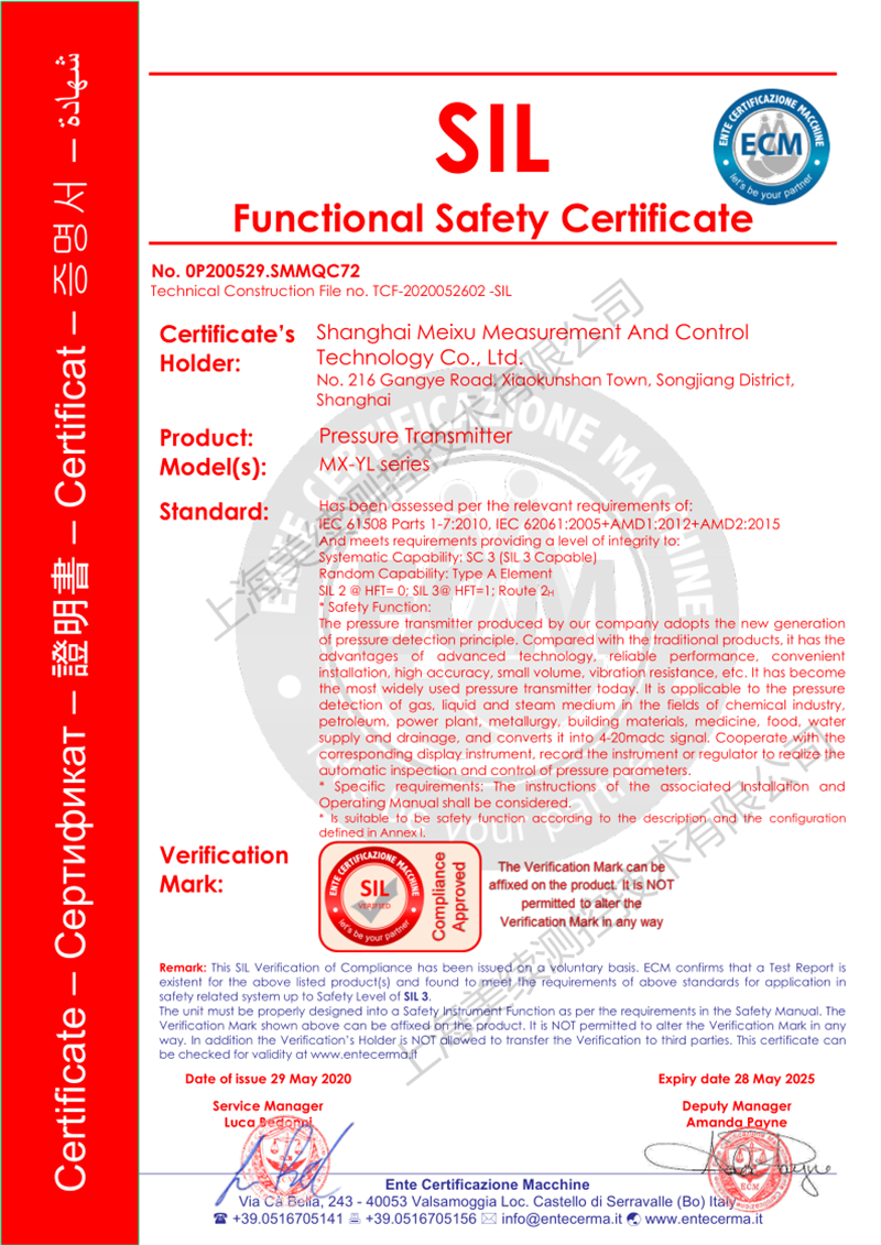 2020年的6月,上海美續測控獲得了“SIL安全認證”,這份榮譽離不開全公司上下所有人的努力,因為有他們,所以有現在的美續測控,把所有的不完美慢慢的完善它。接下來我們一起了解一下SIL安全認證吧。