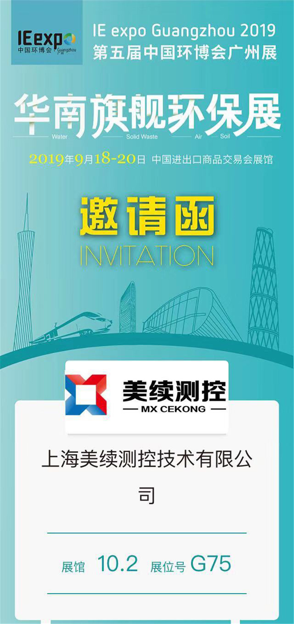 8月底剛剛分別的上海國際化工展,美續測控即將在IE expo Guangzhou 2019中國環博會廣州展展館10.2,展位號G75與你們再次相遇。