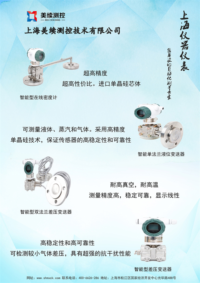 高精度壓力(YL)系列 衛生型壓力(120)系列 高溫熔體(RT)系列 智能單晶硅(差壓/液位)188系列 智能在線密度計